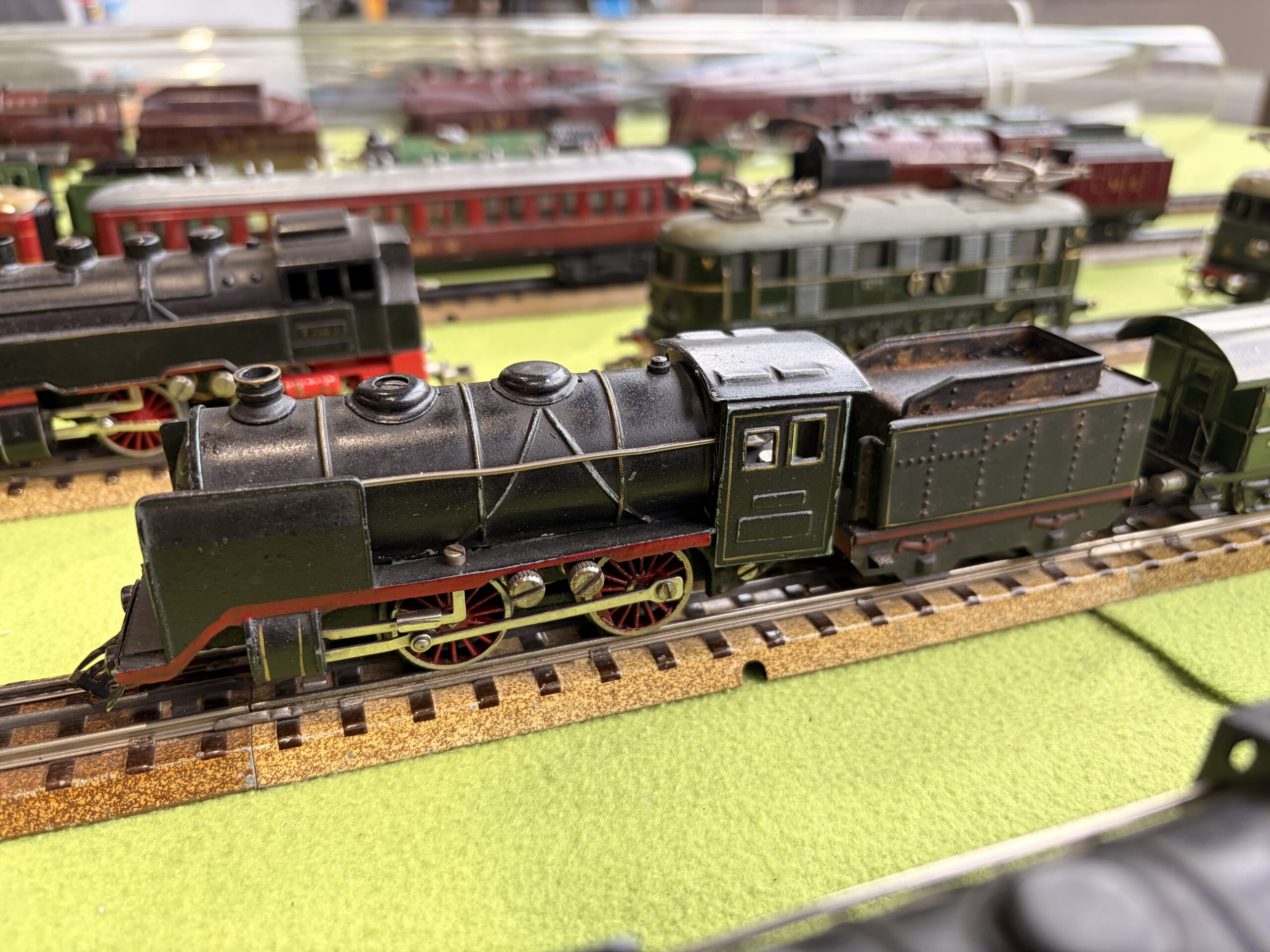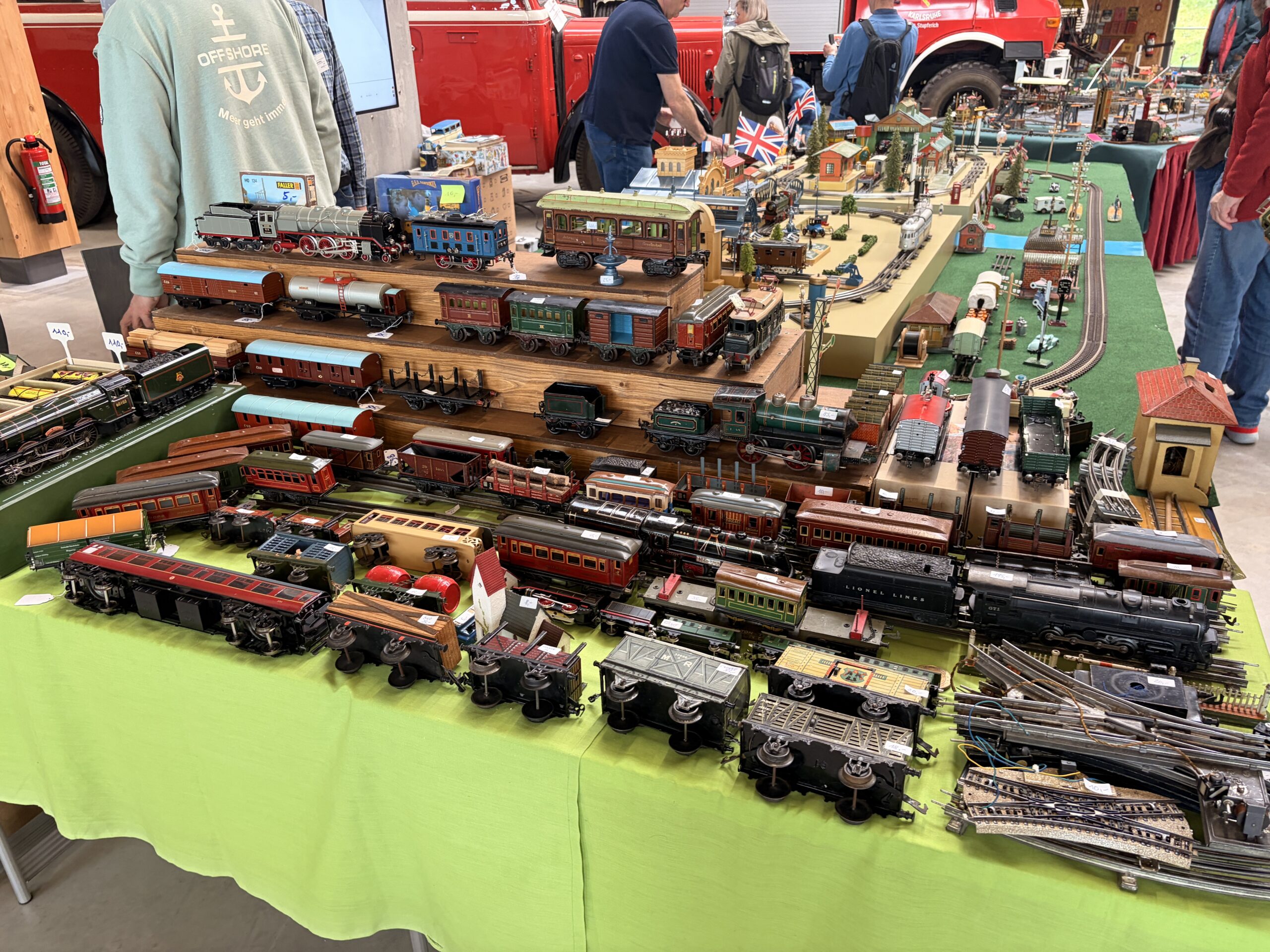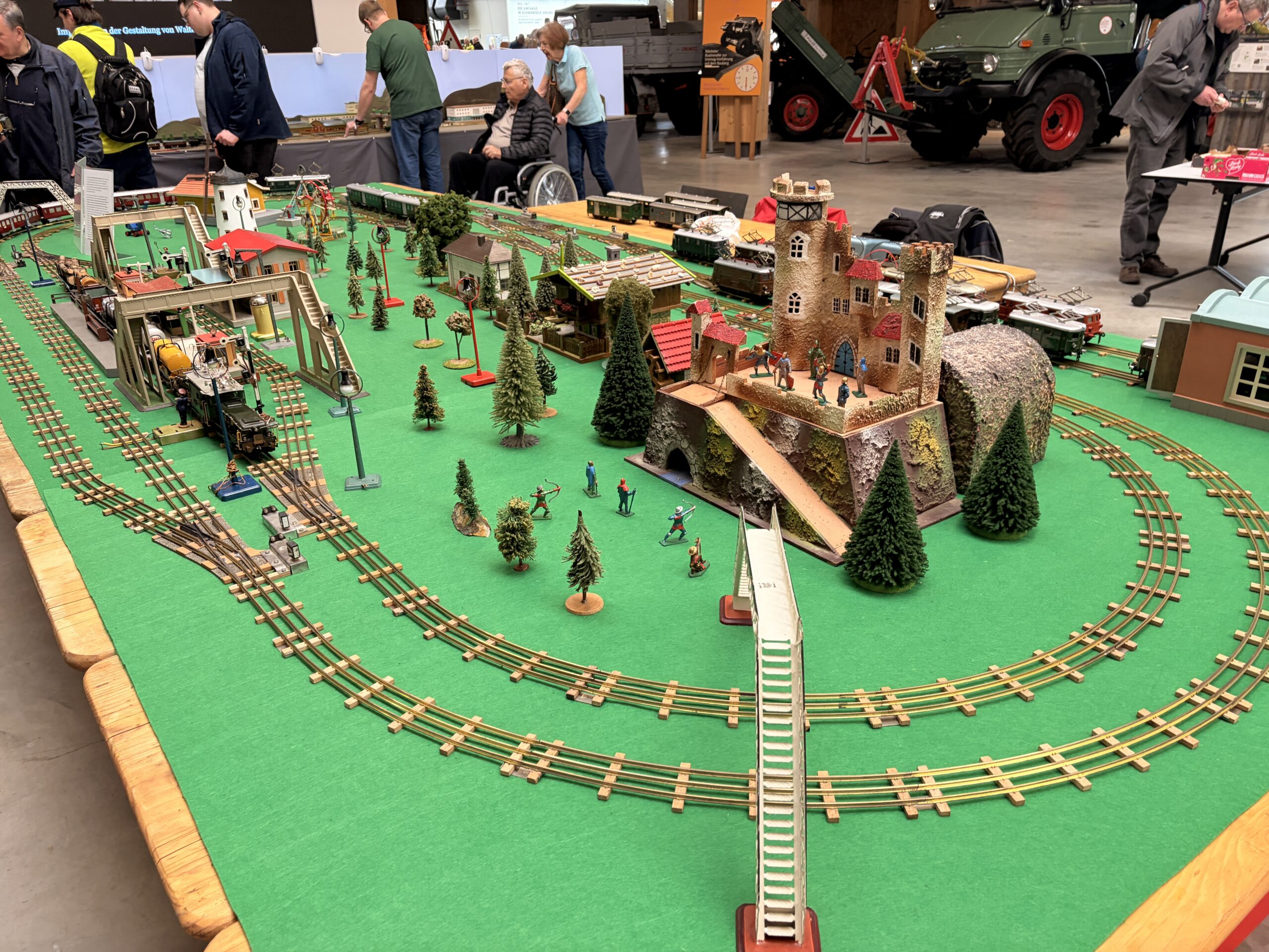 Bei den Elektrischen geht es etwas kontrollierter zu. Märklin Vorkriegsanlagen der Spurweite 00 mit seltenem Zubehör sind ebenso zu sehen wie seltene Spur 0 Anlagen verschiedener Hersteller und Epochen. Auf der bewährten 6 Meter Schauanlage zeigen Umbauspezialisten, mit welchen handwerklichen Geschickt sie neue und einmalige Sondermodelle schaffen.